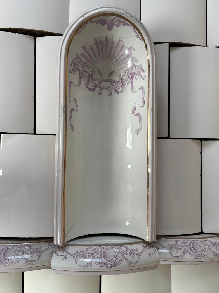 Denna kakelugn är tillverkad för hand ca 1770-80 och står just nu i vår utställning i ett hörn.