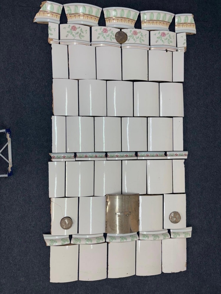 Magnifik kakelugn tillverkad ca 1890 och som är ca 315 cm hög. Denna kakelugn har stått monterad i Stockholm fram till den plockade ned 2023.